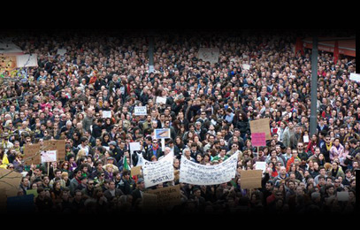 «Milhares de pessoas estão a aderir à manifestação da "geração à rasca", num mar de gente que se concentrou na Avenida da Liberdade, em Lisboa, num ambiente festivo.»