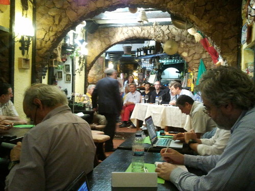 O PSD organizou em Sintra esta conferência; seria fastidioso enumerar todos os blogues presentes, mas além do Albergue estavam, entre outros, Miss Pearls, Cachimbo de Magritte, o Diplomata, Corta-Fitas, Portugal dos Pequeninos. Infelizmente, poucos blogues da esquerda (que foram convidados) e que podiam ter colocado questões. Coube-me uma das primeiras perguntas, semelhante à de João Gonçalves, embora não tão ao osso. No fundo, quis saber por que razão as sondagens sugerem um resultado decepcionante para o PSD. A causa está nas divisões internas do partido, na hostilidade da comunicação social, na deriva populista da campanha?