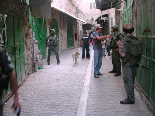 Soldados das IDF patrulham as ruas de Hebron nas imediações do colonato judeu